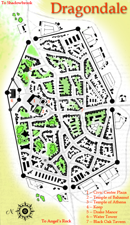 The land-locked seat of power and capitol city of the barony, Moorak personally founded Dragondale after the Rebellion in Furyondy. Initially, the town was crafted of stone-shaped walls of stone until more suitable stone masons could be found. Similarly, the original water supply was itemized frozen ice flows from the Whyestil Lake. Carefully planned, Dragondale holds not only the High Temple of Bahamut on Oerth as well as full temples to Athena of the Greeks and Corellon Larethian of the Elves, the city also has an extensive sewer system and ample running water throughout. A simple but effective irrigation system, bolster by plant growth spells keeps the farms and homesteads extremely prosperous, with an occassional control weather> to ensure mild seasons. Meanwhile, the local bees just seem to do their job better, with happy farm animals and famous dog kennels. Extremely prosperous, Moorak built his family a castle here from which to rule these lands, albeit with a light hand. |