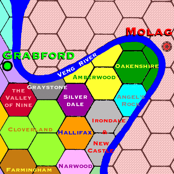 After the Rebellion and Illithid Wars, this region was originally granted to Bart Silverwind, a half-elven fighter/cleric of Freya and founding member of the Fabulous Five. Bart the best friend of Rhom StrongArm and childhood friend of Moorak's. Bart was only a baron for a very short time, as he and his entire family simply vanished less than a year later. After Bart's disappearance, Moorak offically became steward of his friend's lands. This changed after Lionsgate was also effectively abandonned when Moorak annexed the territory into his own. After the Apocalypse, Moorak focused on improvements in Shadowbrook while appointing Hamish overlordship of Lionsgate, with each developing different along those lines. |